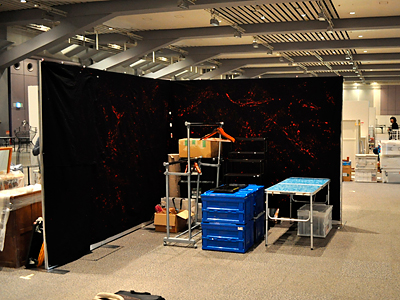 とりあえずは搬入と、壁に布を掛けたって状態でこの日は終わりです。
