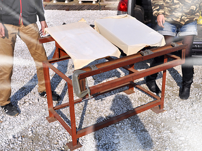 シルクスクリーン製版会社サンコウのもりもっさんから「捨てることになったプリント台があるんだけど、いる?」って電話がかかってきて、「いるいる」詐欺まがいに即答。