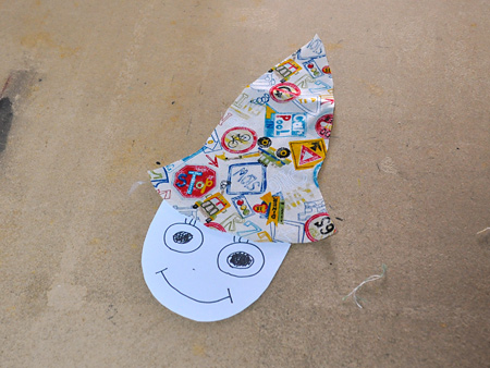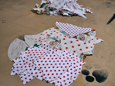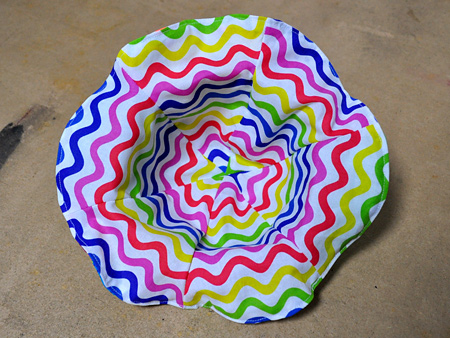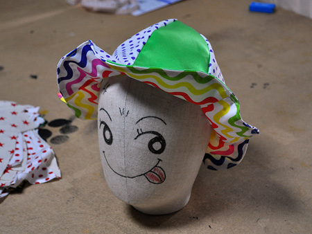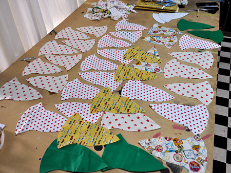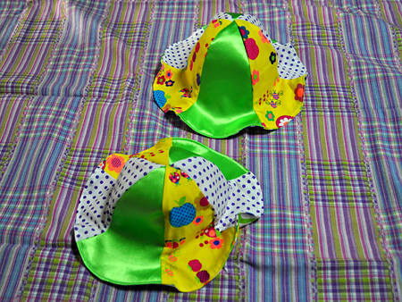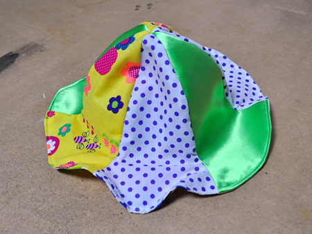 この三角の形が帽子の各生地になりますが、なんだかこれ自体が帽子みたいですねぇ。