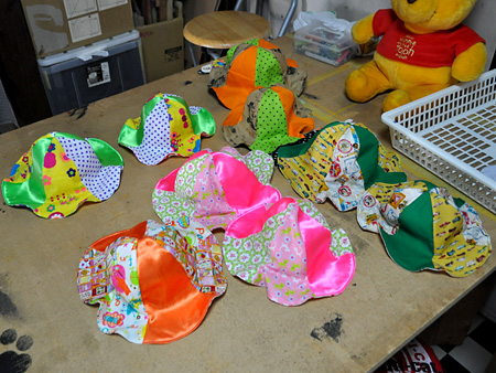 なんていうか、正直どれも「ぶっ飛んだ布使い」なので、ボクとしては一体どれが昨日できあがったものでどれが今日できあがったものなのか、まったくもって判別がつきません(なのでそのへんにあるものをまとめて撮影)。