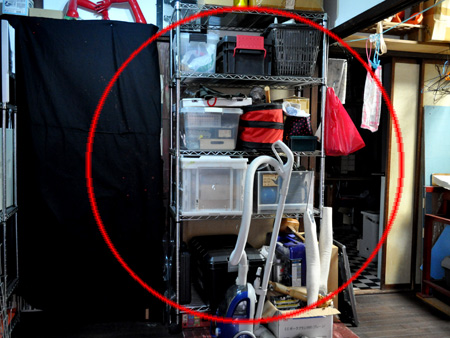 どうでもいい話ですが、事務所には物置スペースがいくつかありまして、玄関前のここもそうです。
