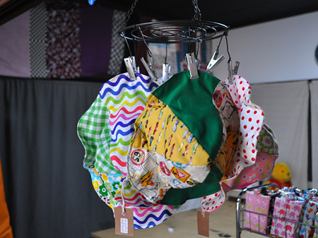 イベントでチューリップハットを店頭陳列すると、どうしても平置きになってしまい見てる人に対してやさしくない、その問題解消からこの什器を作ったそうです。