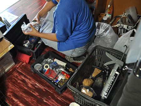 カルは何やら事務所の各種作業道具の確認。