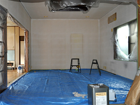ちなみに今日はこんな感じで養生して、室内塗装(下地1回目)だったらしい。