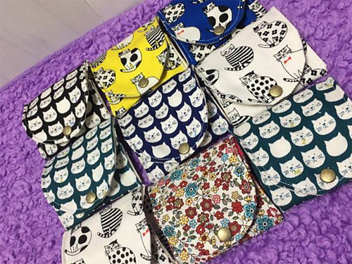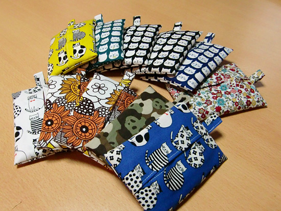 そして同じくにゃんこ柄、さらにその他もろもろのカルメンっぽい生地を使ったポケットティッシュケースです。