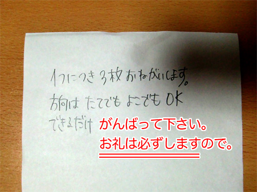 お礼があるっていうんだったら、ボクも俄然やる気がでます。