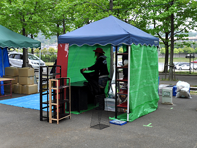 そんな感じで朝は6時頃家を出発して、会場となる交野市に7時半には到着。駐車場で時間をつぶして開場後はテキパキと設営開始。