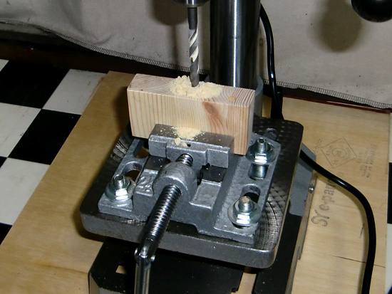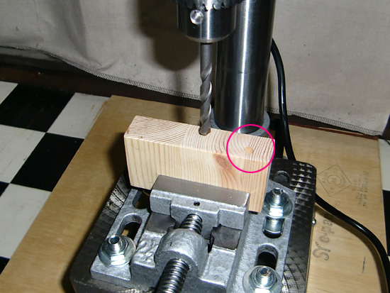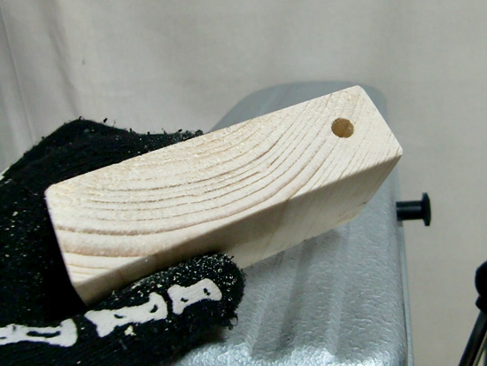 「お試し」ってことで、穴あけに失敗した木をセットして、