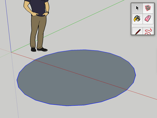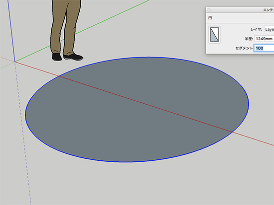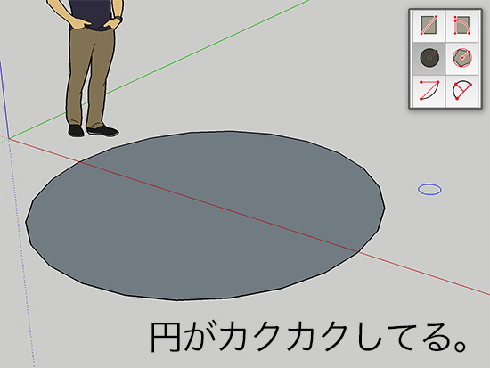 SketchUpで円を描くと、こんな感じでカクカクしてます。