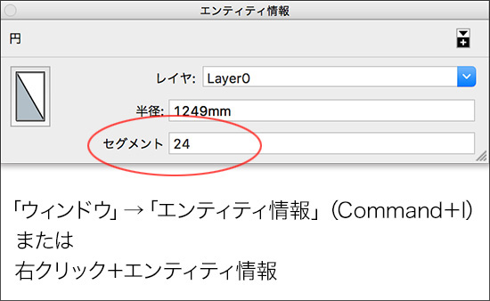 選択した状態でエンティティ情報を確認すると、セグメントが「24」になってます。