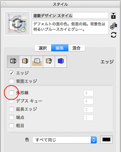 で、SketchUpを使って非常に印象的なのが輪郭、というか「線」。