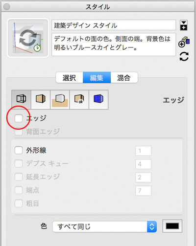 ちなみに、エッジのチェックを外すと、