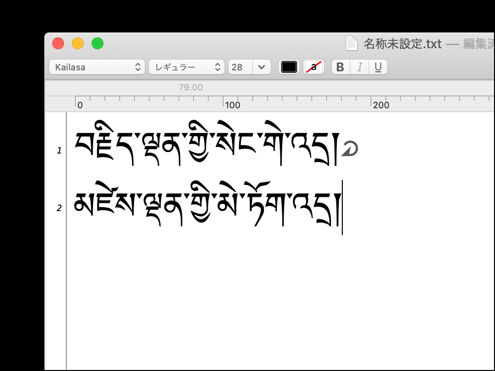 昨日書きましたが、とりあえずMacでもエディタではきちんと表示されるんですよ、チベット文字。