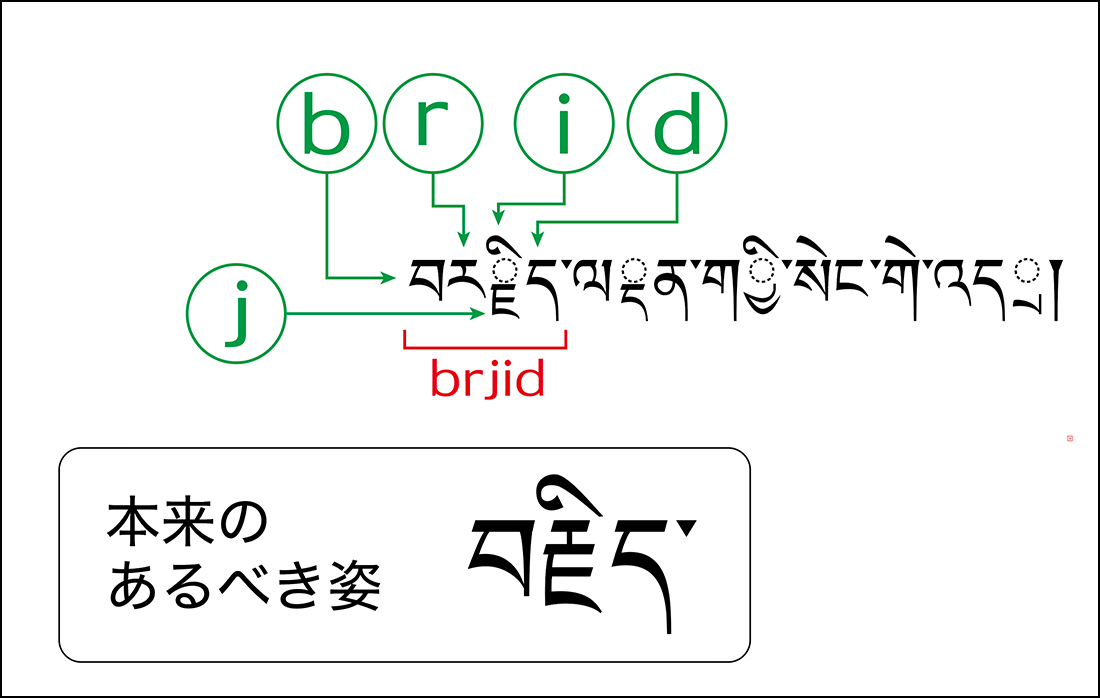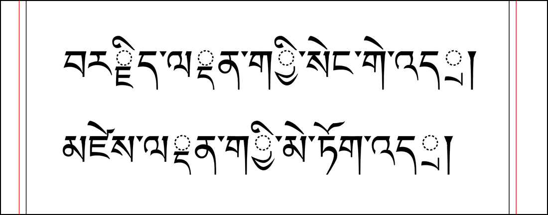 世間にはイラレやインデザインなどでチベット語の印刷物を制作している会社がたくさんありますので、きっと何らかの解決方法があるはずですが、今現在(2018.12.21)その解決方法を探し出すことができませんでした。