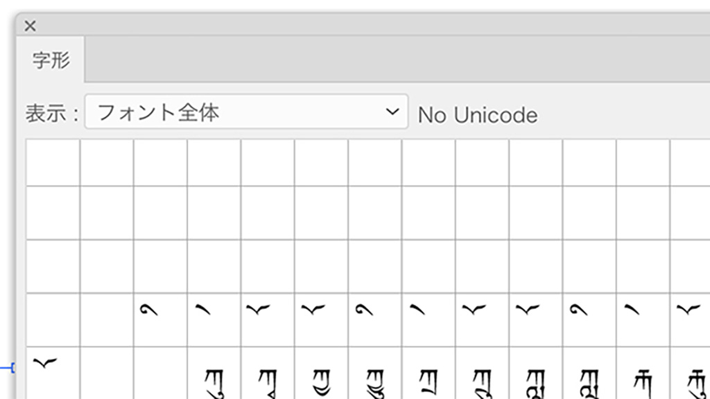 コピペした先のイラレでこんな状況だと、例えばチベット文字を使った何かを作る際に非常に困る!