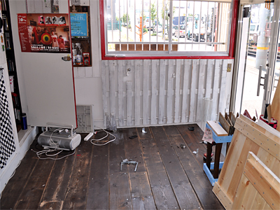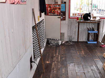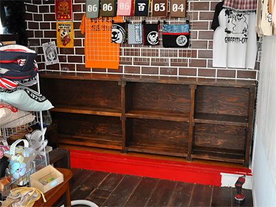 この東側什器は店舗制作の初期段階で作ったものだったってこともあり、どけると結構アラが出てきますねぇ。