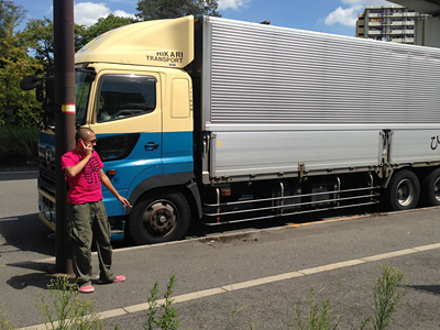その風貌とシチュエーションから、どうみてもトラックの運転手にしか見えません。