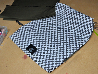 なのでオーダーのショルダーバッグも、ポケット裁断して、端の処理をして、内布にくっつけて、マグネットボタンを付けて、んで内布の両端を縫ってって段階で終了です。