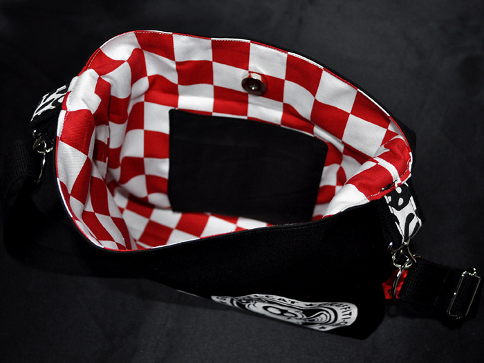 内布は赤の市松。約13cm×14cmのポケット付きです。