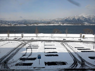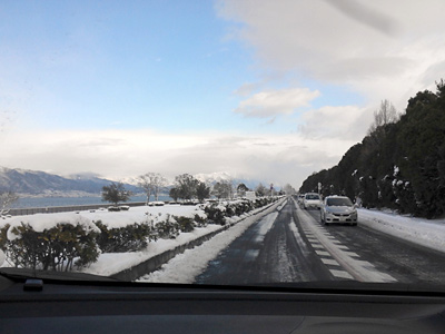 雪に埋もれた湖岸道路を駆け抜けて、とりあえず遊びに行きました。
