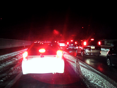 いやー、実家は全然だったので油断してましたが、神戸過ぎた当たりからすでに雪がちらほら来てたんですよ。