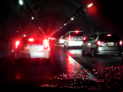 神戸の実家に戻るかどうか、そんなことを悩みつつもそのまま進み続け(そのときは途中で“泊まる”という案は一切なかった)、吹田くらいで「名神草津-栗東通行止め」情報をゲット。