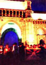 リーガルシネマ、そしてレジェンシィ・インのあたりから、ほんの1、2分、海に向かって歩いたところにインディアンゲートがある。10日の夕暮れ時、薄暗がりの中、海に面するそのボンベイ南端のインディアンゲート前の広場に、亡命チベット人たち、が集まり、祖国と世界の平和を祈り、めいめい手のひらにろうそくの火を灯し、静かに祈り続ける穏やかな形式で、デモンストレーションが行われた。広場に夕涼みに来ていた人々は何事かと集まり、ひとしきり見物し、理解し、立ち去っていった。