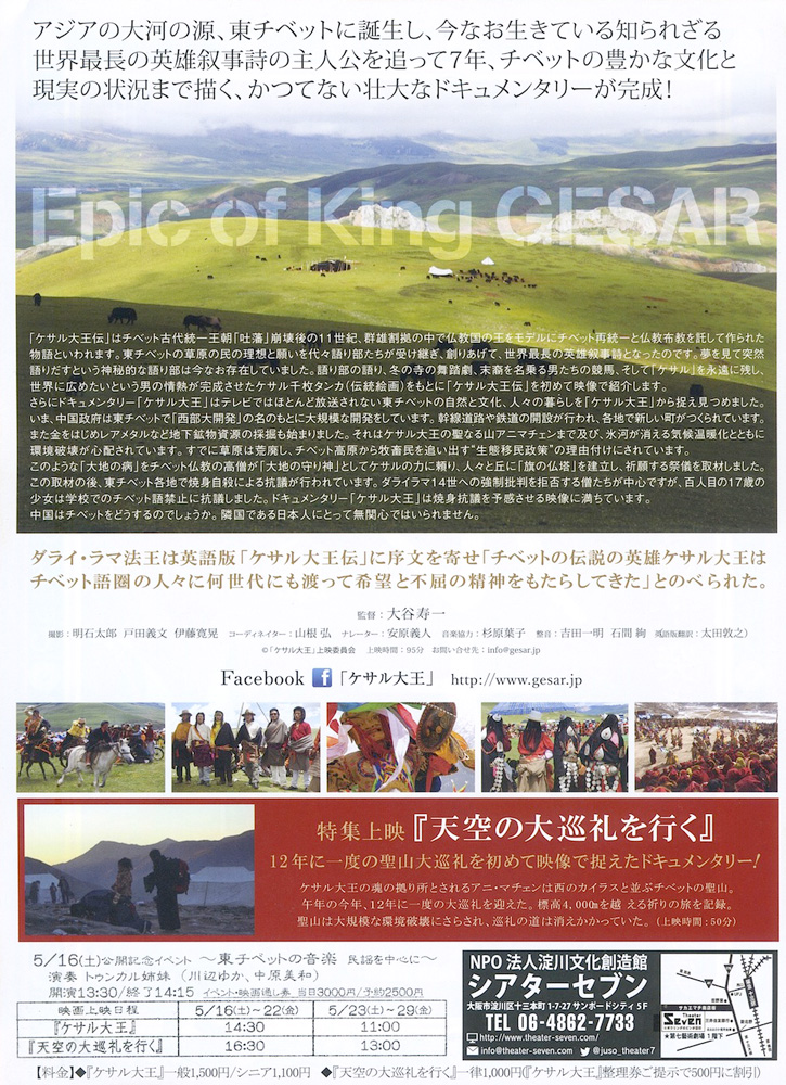 2015年5月23日(土)5月29日(金)「ケサル大王」11:00〜/「天空の大巡礼を行く」13:00〜 - 【会場】NPO法人淀川文化創造館シアターセブン