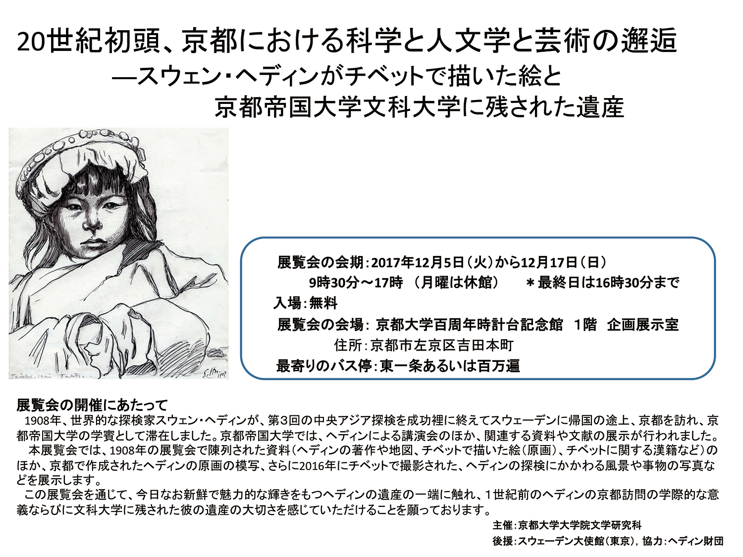 - 【主催】京都大学大学院文学研究科/【後援】スウェーデン大使館(東京)/【協力】ヘディン財団