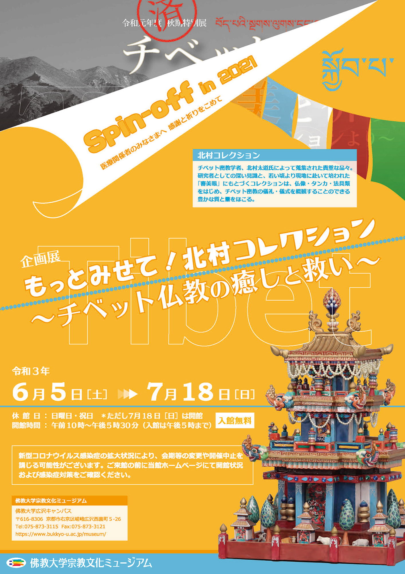 佛教大学宗教文化ミュージアム(広沢校地)で、種智院大学名誉教授の北村太道先生のチベット仏教美術のコレクションの一部が展示されます。興味のある方は、万全のコロナ感染予防対策(体調管理とマスク)をしてお出かけください。