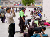 ここは非常に混雑する場所で、その理由は巡礼達が五体投地をしたり、チューメ(ヤクバターの灯明)を供えたり、黄金の釈迦牟尼像(12歳時の姿)にカタを掛けたり、真摯的な「信仰に生きるブッダの民」が台座に頭を押しつける姿があるからだ。