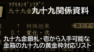 【九十九関係資料】九十九金銀札・壱から入手可能な金箱の九十九武器の黄金枠対応リストとステータス-240604