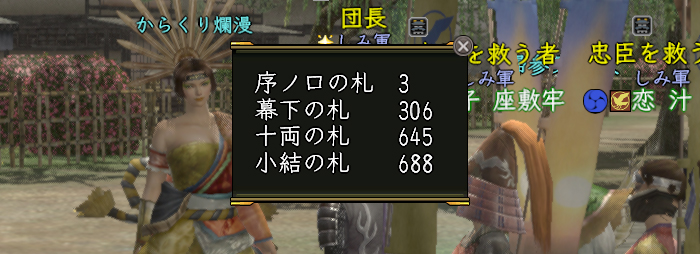 1. ハロニチワ。やはり遊戯メダルってとこが笑えますな。昨日は前借りありがとうございました。おかげさまでやっと鎧ができました(宝玉の副枠は後程)黒金剛の研磨石も54個でなんとかいけましたのでどこかで調整して3週でお返ししようと思います。やっと見た目バランスの悪い装備から脱却できました。合戦宝箱37個あけて丙が1乙が20荒石が16でした。今週はノルマ優先でやって札調整しながらやっていきたいと思います。