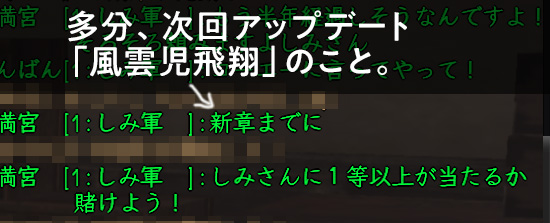 大型アップグレード「風雲児飛翔」の情報は来ませんでした。残念!