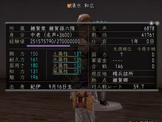 昨日、雑賀仕官日数が1年になりました。つまり「清水が信on始めて1年経ちましたー!」おめでとう!自分!