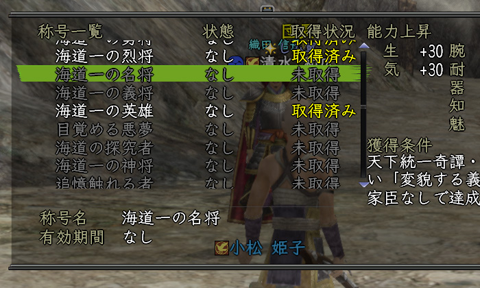〝天下統一奇譚〟の称号の未達成を確認したところ・・・・うーん、まだ結構残ってるけど、やっぱ〝悪夢桶狭間・極〟をクリアしておきたいところです。