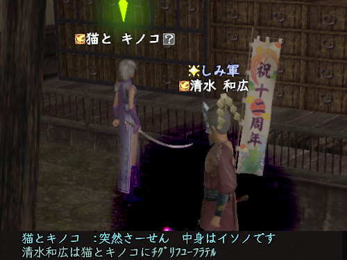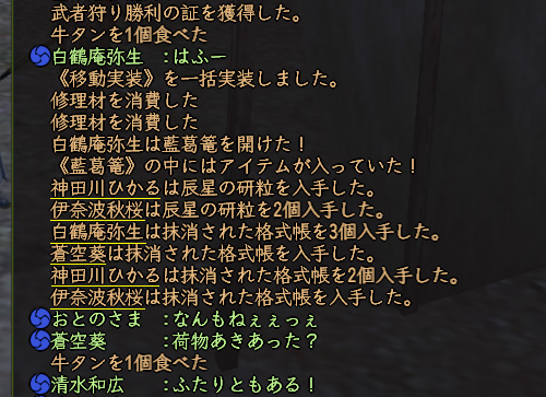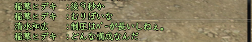 正直全然覚えてないんですけど、この日は恐らく、いっきゅさん3垢、住田さん2垢と一緒に、新生おとのさまのために二条城の攻城戦で「武者狩り頭」をやってたんだと思います。