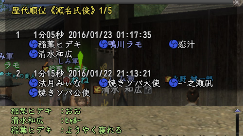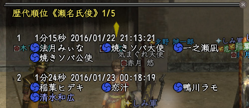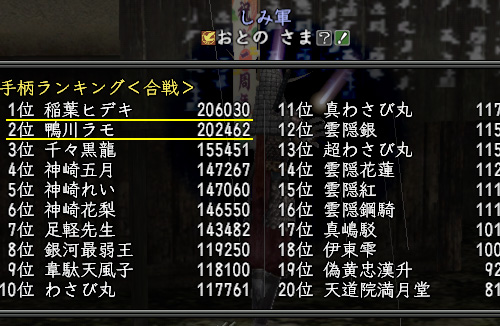 「桶狭間・弐」の「瀬名」でして、倒すのが結構早かったんでランキングを確認すると、なんと歴代2位!