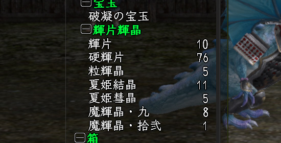 今回の「適当宝玉」制作でアホみたいに魔輝晶を使ってしまい、残りは〝魔輝晶・拾壱〟が100個ちょい。実に2,000個以上の魔輝晶を使ったことになりますねぇ。