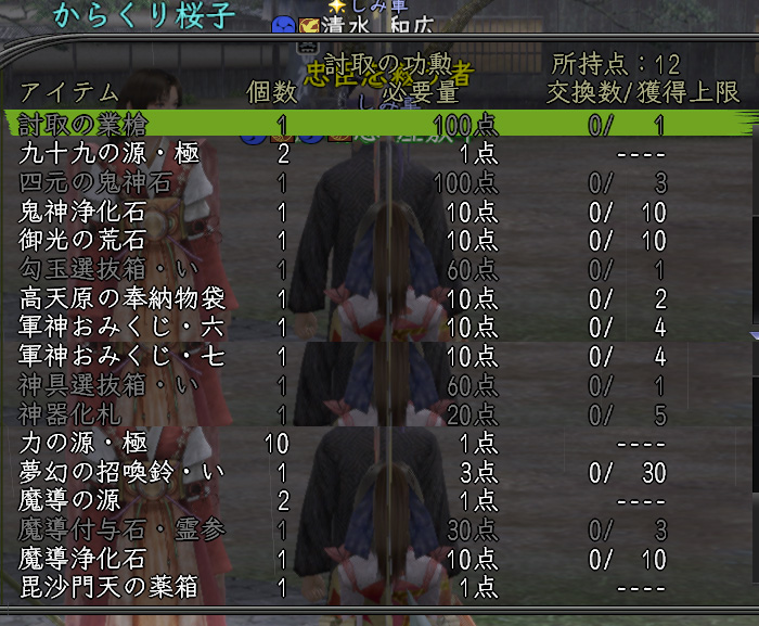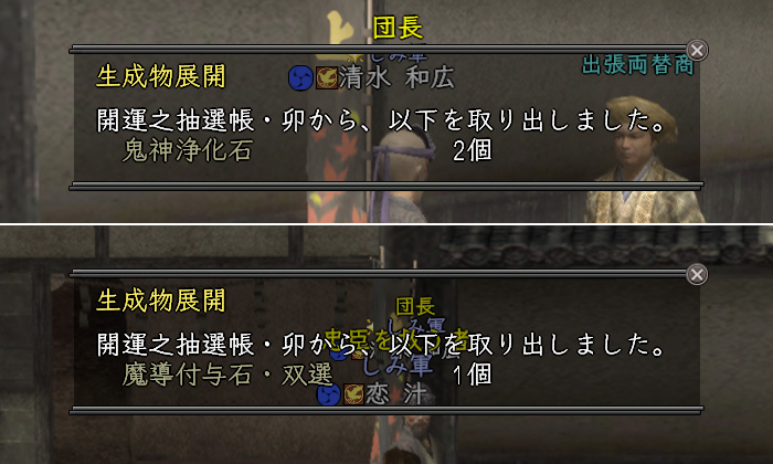 - 上級道場勲札交換(虚空の鬼神石/受継鬼神珠・壱/双継鬼神珠・壱)