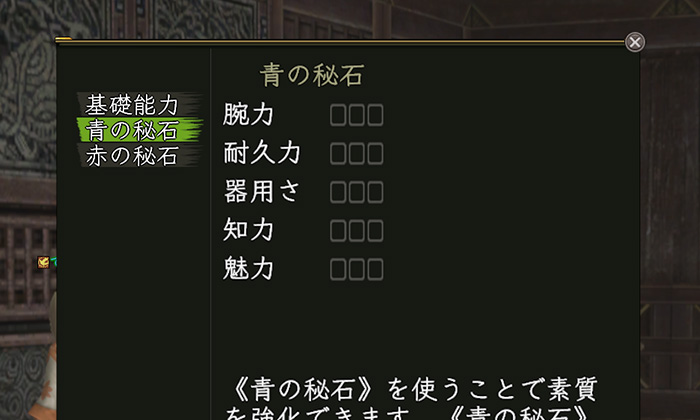 求めるべきはステ5箇所、それぞれ3枠ありますので15枠。〝青の秘石〟と〝赤の秘石〟のそれぞれで合計30枠。