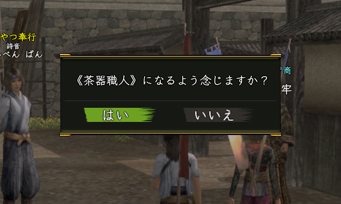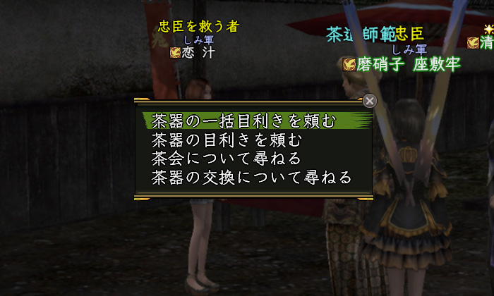 茶屋付近にいる茶道師範に目利きを頼んで「未鑑定」状態を解除。
