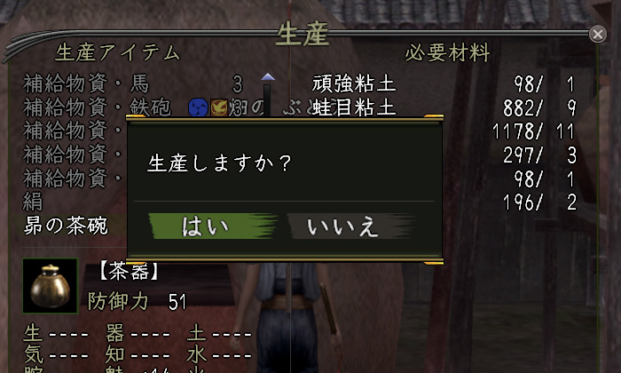 清水家生産四天王(自称)では最弱と言われるぶどう、「器用さ2306/茶器職人の職人装備は4箇所」という状況で生産開始です。