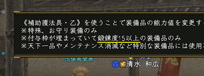 護法具は鍛錬度が15未満の装備には使用できませんので、その鍛錬度を埋めるための茶会となります。