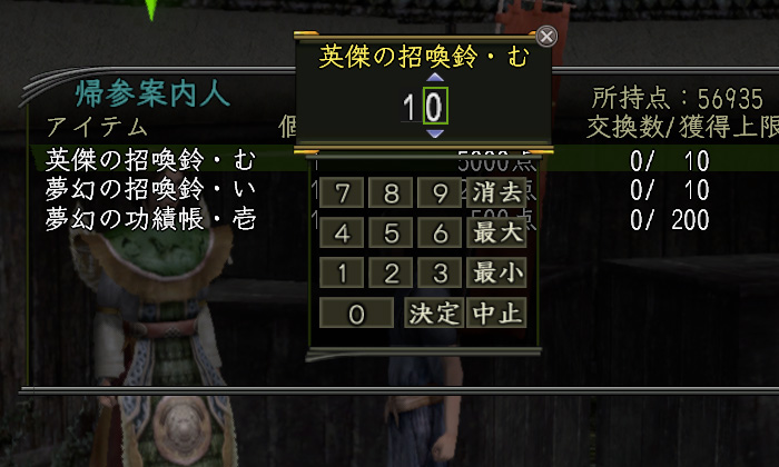 30分ほど戦って、なんとか5万4,000ポイントを確保。最低ラインの〝英傑の召喚鈴・む〟×10と〝黒金剛の研磨石〟を交換です。