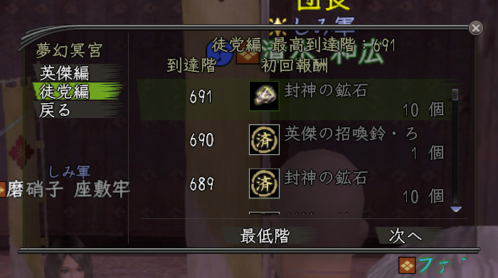 特にやることを考えてなかったので(客将のことしか頭になかった)昨日の続きだな。あと30レベルほどで芸の新技能の覚醒が3つ終わりますので、〝黄泉之狭間〟にてがんばります。