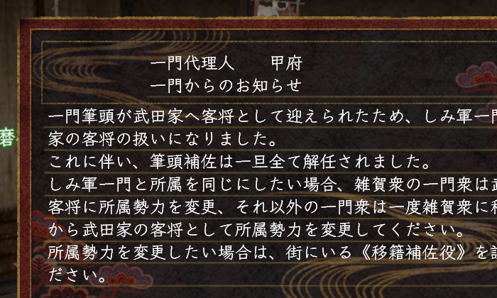 そもそも一門の機能自体それほど活用してないので気にしなくてもいいのかなぁって投げやりでした。