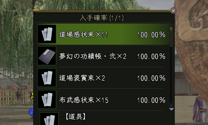 ちなみに、銀箱入手を計算に入れてる理由は〝道場感状束〟が欲しいから。何故金箱に〝道場感状束〟が入ってないのか理由が分かりません。〝布武感状束〟よりも〝道場感状束〟を重視していただきたいですな(〝主従の絆〟を求めて毎週消費中)。
