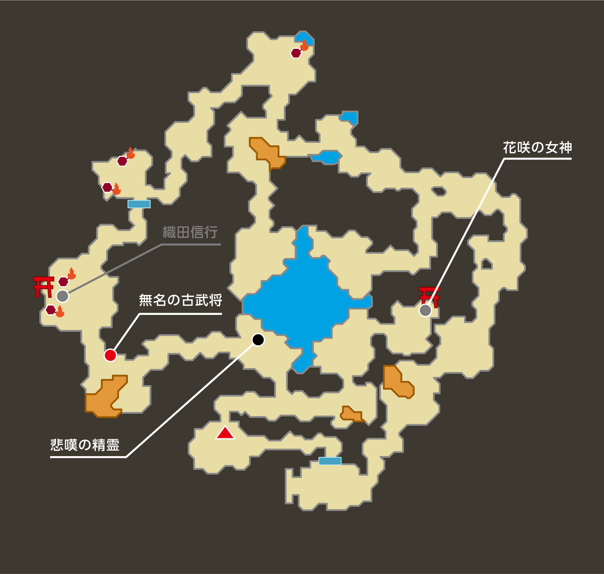 ちょっと遠いけど花咲の女神をやって、ルート上の悲嘆の精霊、そして無名の古武将をやります。これで化け物党首の撃破が7になります。