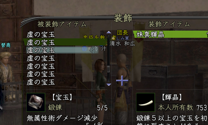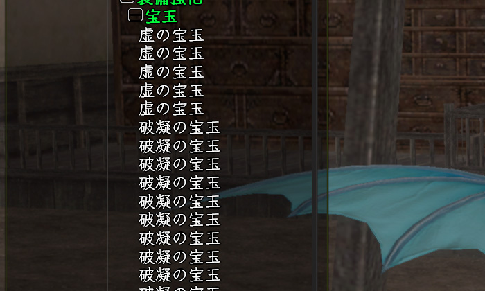 うちの3垢が合戦場で活動する場合、構成上どうしても短期決戦となります。出来るだけ長時間、軍が死なないことが前提になりますので(大抵終盤には死ぬ)、菱形の宝玉は〝虚の宝玉〟を使うことにしました。